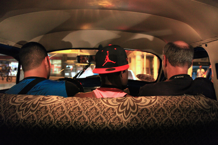 The face of Raul Castro shown up one minute before the News were ending. A dry silence filled the room like heavy concrete. That's was enough for everydody to understand the understable. Raul Castro declared in a soviet style recording from his Swiss alpin chalet office the death of the Leader of the Cuban Revolution and 9 days of mourning. And disappeared. It was 11:30 pm. The country was facing an historical issue and nobody was awake. In a question of seconds people ran into closed rooms to make some calls. I finally stayed alone in the living room and without any previous publicity the TV begun to play an american spy movie from the 90’s perhaps called True False. Even this was very confusing. Then there was this upset women spinning around. After few minutes, she gave a punch on a wall. I came to her asking what was happening. She was’t even considering me. After a moment she turned towards me and said : « they show up like the weather man and throw it into your face. They have closed 50 years like a book. As it has never existed. This is a lack of respect for the people !». This answer was so far from what I was expecting that I ended totally mute. People wanted to cry Fidel to cry their years. I was a fish swimming in hot waters and everybody was remaining silent. I begun to realize myself how much I missed about the complexity of this country and how the people were able to control themselves. We stucked our ears and eyes at the windows. La Habana was remaining totally silent. Just old exhausted russian engines drumming the night in echo. People decided to go quicly back home. We went as well to bed. Them with a long stip of questions to shake and I with the strange feeling that I was crossing the big history almost by accident. The next day the population woke up silent. Nobody knew what finally happened this night. I am taking a 10 pesos collective taxi to go downtown. A 1937 white dodge stopped next to me. Full fresh repainted. Inside the driver is a young men. Dressed in a santero suit. Immaculate. I am taking the front place. There is no much people on the street. No public transportation neither. Long strings of purple leds are running like snakes inside the roof of the car. We travelling down La Rampa. It's a blowing purple rain just in front of my eyes.