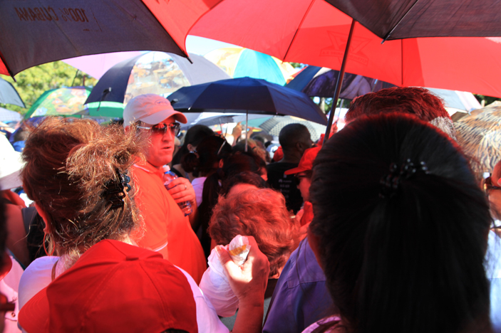 Around the table, everybody was electrified and making plans for the next days. Mobile phone were entering in their life. So as she took the phone call nobody payed attention. As she hanged up after 5 seconds of silence (as it was necessary for her to pronounce each word) she said clearly to the assistance : "Fidel ha muerto".